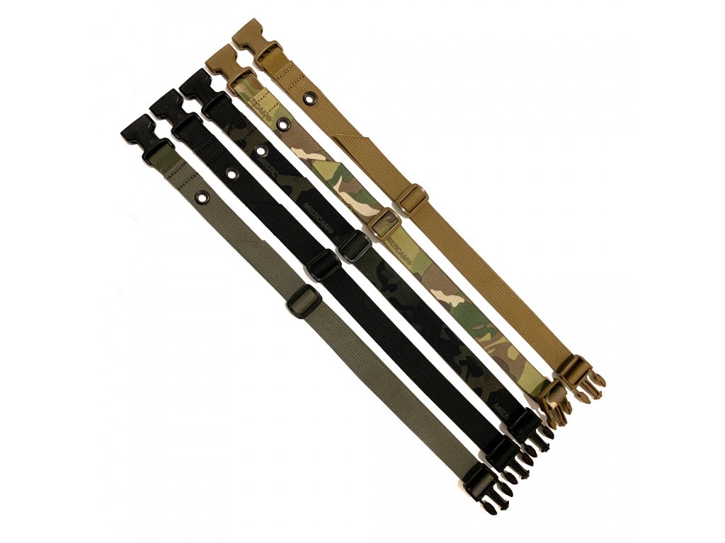 Stehenní popruh má spolehlivé, značkové a osvědčené přezky a další hardware vyrobené americkou společností ITW NEXUS a originální popruhovinou (MultiCam nebo solid colors).